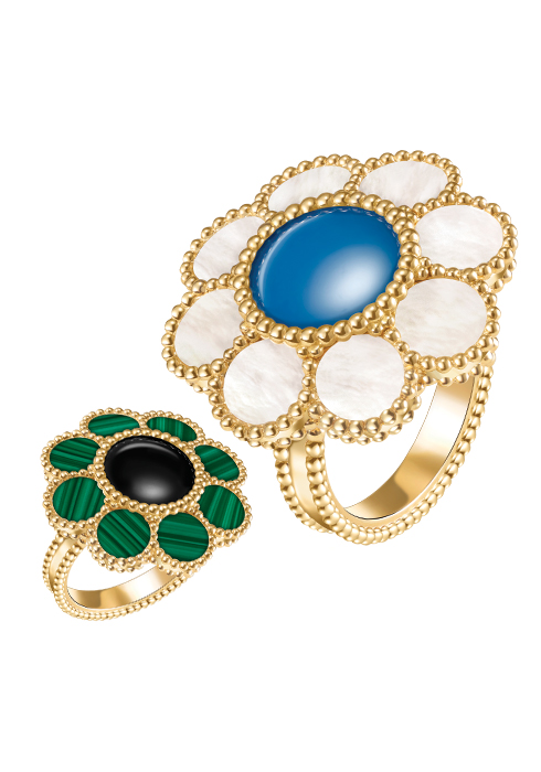 자연의 아름다움에서 받은 영감을 섬세하고 환상적인 주얼리로 표현하는 반클리프 아펠에서 이번에는 꽃에 집중한다. 메종의 가장 상징적인 테마 중 하나인 플로라(flora)를 파크레트(Pâquerette) 링으로 탄생시킨 것. 오랜만에 선보이는 새로운 노벨티 작품으로 데이지 꽃을 형상화했으며, 총 세 가지 버전으로 선보인다. 옐로 골드에 푸르고 알록달록한 꽃이 피는 여름 정원에서 영감받아 다양한 컬러의 장식용 스톤을 세팅했다. 꽃의 중앙, 줄기 등 모든 가장자리를 메종의 시그너처 모티브인 골드 비즈로 장식해 빛나는 광채와 둥근 디자인을 더욱 강조하며 메종의 색을 더욱 공고히 한다. 문의 1877-4128