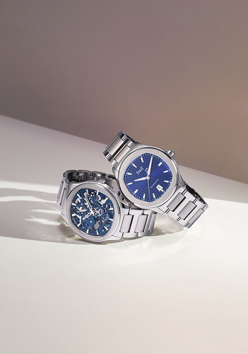폴리싱 스틸 케이스에 새틴 스트랩이 편안한 착용감을 선사하며, 슈퍼루미노바 인덱스와 블루 컬러의 다이얼로 청량한 느낌을 부여하고, 자체 제작 1110P 기계식 셀프 와인딩 무브먼트를 장착한 피아제 폴로 워치 42mm 1천7백50만원, 피아제 폴로만의 아이덴티티가 드러나는 라운드 베젤을 장착한 곡선형 스틸 케이스에 쿠션형 다이얼이 돋보이는 디자인으로 기존보다 3mm 얇아진 6.5mm 슬림함을 자랑하며, 1200S1기계식 셀프 와인딩 스켈레톤 무브먼트를 장착한 피아제 폴로 스켈레톤 워치 42mm 4천2백10만원 모두 피아제 1668-1874.