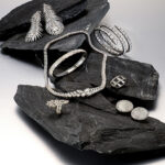옐로 골드로 뱀 모티브 쎄뻥 옐로 골드 원 헤드 라지 링 3천만원대, 벌새가 꽃을 찾아 날아든 모습을 정교하게 표현한 히비스커스 링 8천만원대, 루비로 고슴도치의 눈을 세팅하고 몸체를 볼륨감 있게 묘사한 고슴도치 링 1천만원대 모두 부쉐론.