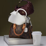 앙증맞은 사이즈의 꽃과 나뭇잎으로 체인을 장식한 퀼팅 클러치백. 14X23.5cm, 55만원