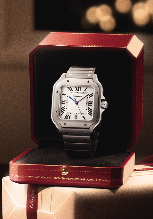 새롭게 선보이는 산토스 드 까르띠에 워치로 티타늄 소재를 적용했다. 스테인리스 스틸보다 가볍고 강한 소재가 만들어내는 견고한 존재감, 그리고 스크루 장식의 상징성, 기능과 디자인의 균형을 완벽히 구현한 이 시계는 끊임없이 도전하는 현대인에게 선물하기에 제격이다. |