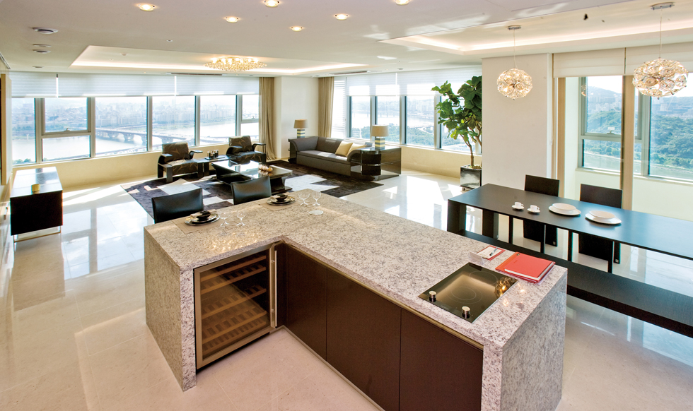 화제의 주인공은 갤러리아 포레의 전용 면적 371m2 짜리 펜트하우스. 최초 분양가가 51억원이었던 이 펜트하우스가 10억원의 프리미엄이 붙은 채 매매가 이뤄졌다는 이야기가 나오면서 부유층을 중심으로 입소문이 돌고 있다고 한다. 갤러리아 포레 공인 관계자에 따르면 “계약금도 일반적인 10%가 아닌 20%로 진행됐다”며 “계약금만 약 12억원으로 강남의 웬만한 99~132m2 대 아파트에 상당하는 가격에 거래가 성사됐다”라고 전했다. 지난해 서울 뚝섬에 그 모습을 드러낸 45층 주상복합 갤러리아 포레는 233~377m2로 구성돼 있는데, 입주를 개시한 지 1년도 채 안 됐지만 전·월세 대기 수요가 있을 정로로 인기를 끌고 있다. 입주 초기에는 경기 불황의 여파로 분양가에 판매하려던 급매물들이 있었지만, 지금은 299~331m2 를 중심으로 가격이 올라 쉽게 매물을 찾기가 힘들다고.