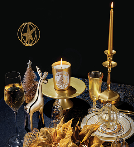 연말의 설렘을 배가해줄 감각적인 아이템, 촛불의 반짝임과 화려한 오브제로 완성한 겨울 테이블.