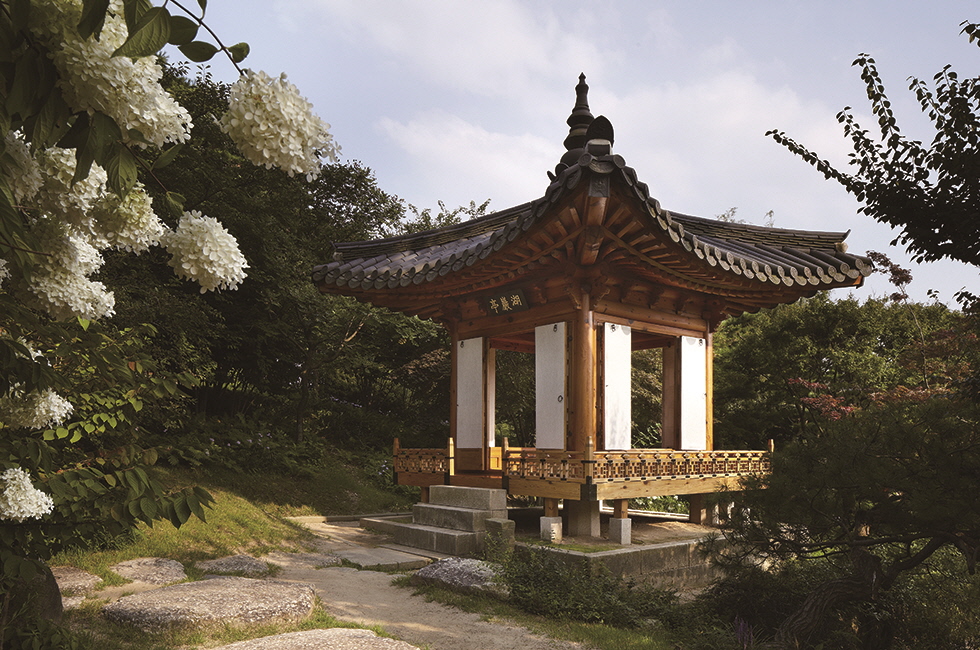 용인 호암미술관으로 가는 길, 가장 깊숙한 정원에 ‘호암정’이라는 한 칸짜리 정자도 있다. 굽이굽이 산자락으로 이어진 풍경 끝에 걸쳐지는 정자는 단원 김홍도의 ‘진경 산수화’를 떠오르게 한다. 정원 입구는 깊은 죽림으로 만들어 정원에 대한 기대감을 불러일으키고, 죽림에는 그동안 문화재단에서 수집한 벅수들을 대석 밑에 재미있게 배치했다. 호암미술관 전체에서 가장 중앙부에 위치한 주 정원에는 오랫동안 미술관에서 모아둔 이름 없는 다양한 석공의 석물이 배치돼 있다. 신라시대 석탑을 비롯해 거북이, 통일신라시대 삼체불, 고려시대 석불 같은 귀한 유물이다. 법연지라 이름 붙인 연못도 아름답다. 메마른 연꽃이 뒤덮은 연못은 쓸쓸하지만, 시간이 멈춘 듯한 고요함을 느낄 수 있다. 최근까지 금에 깃든 위대한 지혜를 폭넓게 보여주는 <야금전>을 개최했는데, 미술관이 리뉴얼을 앞두고 있어서 다음 전시는 미정이다. 하지만 호암미술관의 아름다운 정원만은 언제든 갈 수 있다.