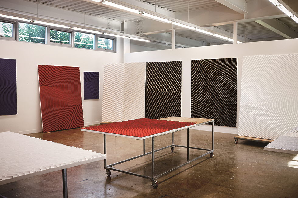 요즘 캔버스 작업을 통해 회화성을 발휘하는 일에 집중하고 있는데, 때로는 색채감각의 한계를 느끼기도 합니다.(웃음) 파란색, 흰색, 검은색, 빨간색, 노란색 등 단색을 주로 사용합니다. 흥미로운 것은 제 작품은 입체 회화이기 때문에 빛에 따라 시시각각 변한다는 사실이지요. 숲속의 나뭇잎 색이 아침부터 밤까지 변하는 것처럼, 작품 색깔이 계속 변화합니다.