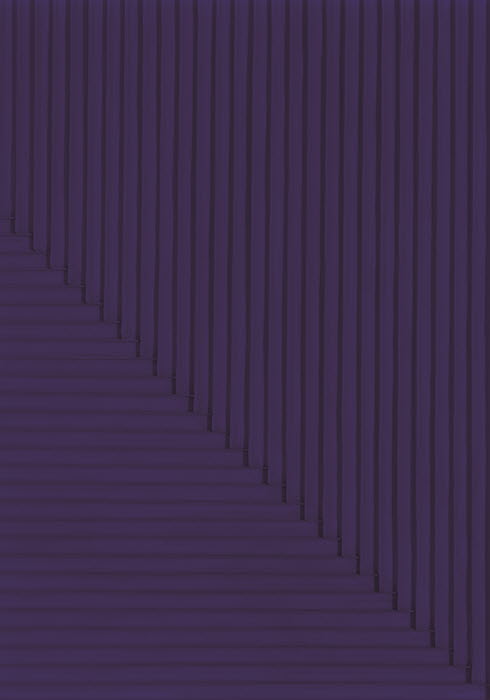 광목을 잘라 사각형 각목에 고정하고 폴리코트(수지)를 바른 후 단단하게 굳힙니다. 바싹 마른 후 뜯어내면 ㄷ 자 형태의 작은 기둥이 완성됩니다. 이 볼록한 빔(beam)을 캔버스 위에 차곡차곡 붙이고 여러 번 채색하면 작품이 완성됩니다. 초창기에는 별도로 채색을 하지 않고 광목 자체의 색깔을 작품에 그대로 적용했습니다. 그리고 투명성을 극대화하기 위해 뒤에는 아크릴 판을 댔습니다. 하지만 너무 무거워 작품을 크게 만들 수는 없었습니다. 요즘 하고 있는 캔버스 작업은 크기도 키울 수 있고, 아크릴물감으로 여러 번 채색하기 때문에 회화성이 강조됩니다.