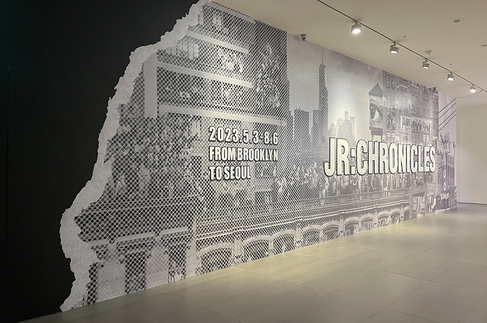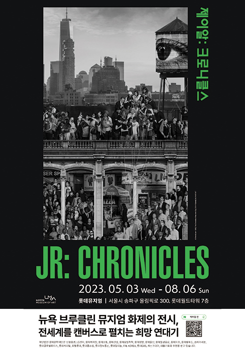 JR을 심도 있게 접할 수 있는 대규모 개인전 <JR:CHRONICLES>)가 서울 롯데뮤지엄에서 진행 중이다(8월 6일까지). 이 전시는 뉴욕 브루클린 미술관(2019), 독일 뮌헨 쿤스트할레(2022~2023)를 거쳐 한국에 왔다. 사진, 영상, 프로젝트를 기록한 아카이브 등 1백40여 점을 선보이고 있다. JR의 작품은 하나하나 감동적이다. 그러나 작품에 대한 이해 없이는 감동을 온전히 느끼기 어렵기에 몇몇 작품에 대한 간단한 설명을 덧붙이겠다.