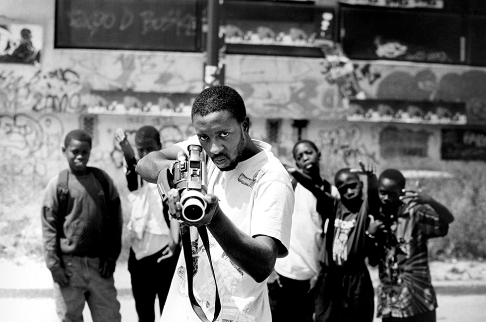 이 작품에서 JR은 그의 친구이자 영화감독인 래지 리(Ladj Ly)를 찍고 있다. 래지 리는 카메라를 총처럼 겨누고 있다. 사실 카메라와 총은 여러모로 공통점이 있다. ‘photo shoot(사진 촬영)’의 ‘shoot’은 ‘쏜다’라는 의미다. 카메라나 총은 호흡을 가다듬고 집중하며, 초점을 맞추고, 결정적인 순간을 노린다. 무엇보다 잘못(왜곡)된 저격은 커다란 피해를 야기한다. 이 점을 잘 아는 래지 리는 위 이미지와 같은 포즈를 취했다. 아는 동네 형들이 사진을 찍으니, 래지 리 뒤편으로 동네 아이들 몇 명이 함께 사진에 찍히고 싶어, 갖가지 포즈를 취하고 있다. 그 뒤로 JR의 작품들이 흐릿하게 보인다. 이처럼 3중으로 중첩된 의미(사진과 총, 아이들의 순진함, JR의 작품 등)를 지니고 있는 작업이지만, 사람들은 래지 리가 유색인종이라는 이유로, 사진 속 오브제가 무엇인지 자세히 보지도 않고 ‘총’을 겨누고 있다고 여긴다(래지 리는 이 사진을 찍은 지 15년 뒤 이민자 문제를 다룬 <레미제라블>(2019)이라는 장편 극영화 데뷔작으로 칸 영화제에서 심사위원상을 거머쥐었다. 당시 대상 작품은 봉준호 감독의 <기생충>이었다).