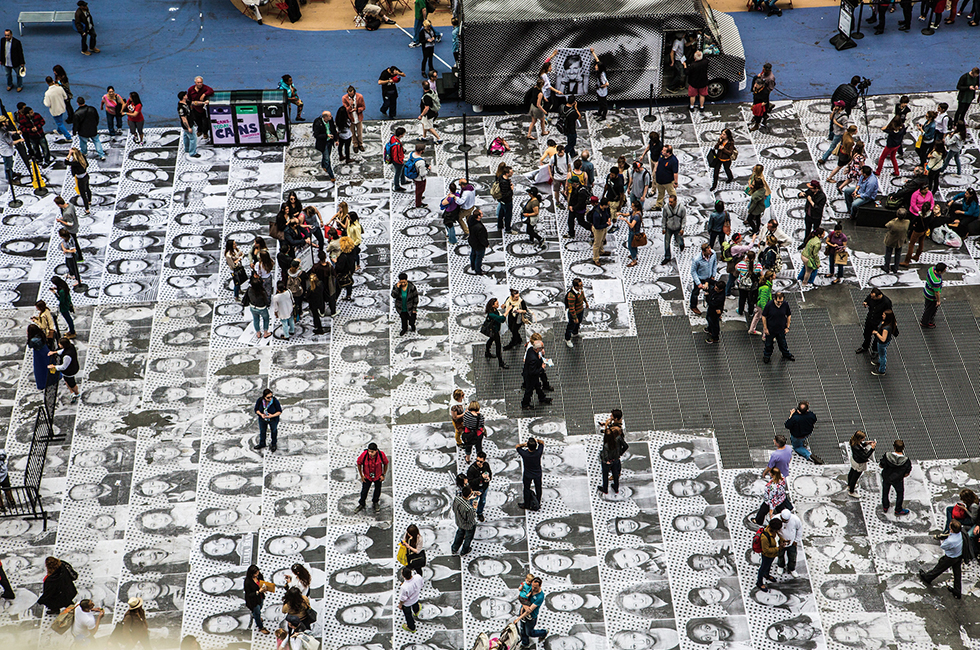 이 사진이 예언자적인 역할이라도 한 듯, 이듬해인 2005년 ‘파리 소요 사태’가 발생한다. 경찰 검문을 피해 달아나던 10대 무슬림 소년 2명이 감전사로 사망한 안타까운 사건이다. 이때 한 매체가 JR에게 소요 사태를 일으키는 청년들을 촬영해달라고 요청하나, 친구와 같은 그들을 부정적 이미지로 다룰 것을 우려해 거절한다. 이때 그는 자신의 작품이 나아갈 방향을 확신한다. 미디어나 뉴스가 소외자와 소수자의 부정적인 모습을 주로 보여준다면, 그는 반대로 긍정적이고 인간적인 면을 보여주리라는 것이다. 바로 이러한 점 때문에 그의 작품이 낙관적이고 지나치게 긍정적이라는 비난도 있지만, 이는 작가의 미학적 포지션이다. 모든 작가가 비관적이고 부정적일 필요는 없다. 다만, 어느 쪽이든 ‘예술’적이고(‘기술’적이 아니라), 비판적이며, 숭고성을 지니면 된다. 더욱이 ‘적극적’인 긍정성은 ‘거리를 둔’ 부정적 비판성보다 훨씬 위험할 수도 있다. 다음에 소개할 프로젝트가 그러하다.
