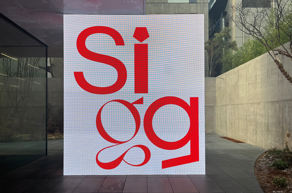 3 송은 입구에 설치된 디지털 스크린. 이번 전시는 송은문화재단이 2021년 신사옥으로 이전한 뒤 처음으로 마련한 해외 컬렉션전이다.