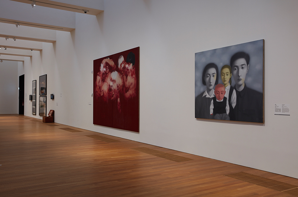 9 M+ 지그 컬렉션의 한 전시실 풍경(장샤오강의 회화 작품(오른쪽)이 배경에 보인다). Installation view of M+ Sigg Collection: From Revolution to Globalisation in Sigg Galleries. Photo_Lok Cheng Courtesy of M+, Hong Kong
