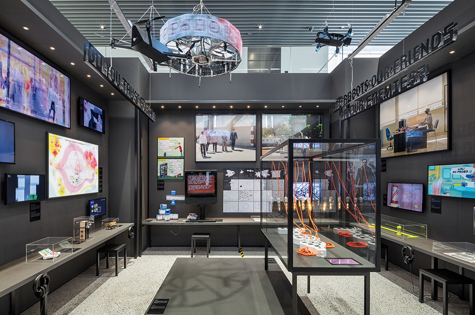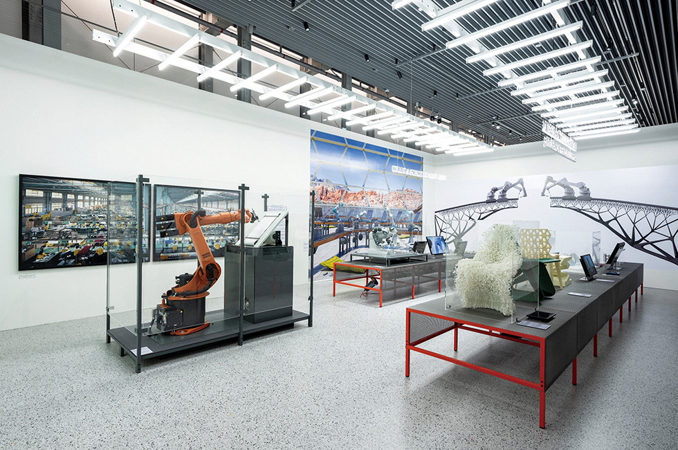 <로봇의 부상>의 저자 마틴 포드는 20세기의 기술 발전 덕에 쾌조를 보였던 생산성 향상과 임금 상승의 공생 관계가 1970년대부터 허물어지기 시작했다고 지적한다. 특히 제2차 세계대전 직후 사반세기에 해당하는 미국 경제의 ‘황금기’에는 공생의 경향이 뚜렷해, 새로운 일자리는 과거의 직장보다 더 나은 일자리로, 수준 높은 기술을 요구했고 임금도 더 높았는데 후반기로 향하면서 이 같은 선순환 기조가 꺾이기 시작했다는 것이다. 급기야 21세기 들어서는 최초 10년간 새로운 일자리가 전혀 창출되지 않았고, 이는 인간과 기계 사이의 근본적인 변화를 의미할 수밖에 없다. 3D 프린팅 기술로 원하는 형태와 소재의 가구를 만들고, 산업로봇을 활용해 도시를 가로지르는 다리까지 만들 수 있는 시대가 아닌가?(실제로 2관에서 선보인 작업으로, 요리스 라만의 암스테르담을 가로지르는 강철 다리 건설 작업인 ‘MX3D’ 다리 프로젝트가 있다) 기계 자체가 근로자로 변해가고 있는 이 시대에 우리는 그저 직업을 잃을까 봐 두려워해야만 하는 걸까? 심지어 예술가나 영화감독처럼 창조적인 일을 하는 영역에서도 ‘로봇 대체’가 가능할까? 여러 의문이 드는 게 당연하지만, 이 지점에서 케빈 캘리의 조언을 들어볼 필요가 있을 것 같다. “로봇이 우리 일을 떠맡도록 하자. 그리고 우리는 중요한 새로운 일을 꿈꾸자!”