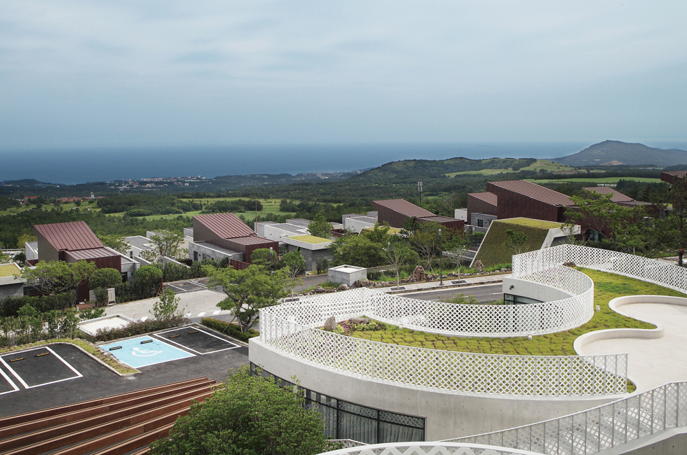 롯데 호텔에서 운영하는 럭셔리 리조트 아트 빌라스(Art Villas)는 도미니크 페로, 구마 겐고, 승효상, 이종호, DA 글로벌 그룹 등 무려 5명의 건축가가 참여한 건축물이다. 프랑스의 건축가 도미니크 페로(Dominique Perrault)는 리조트 내부에서도 자연을 느낄 수 있도록 디자인하는 데 중점을 두었다. “건물이 아닌 풍경의 재창조, 이것이 바로 아트 빌라스에서 강조하고 싶었던 부분입니다. 제주의 풍경을 완성하는 논과 밭, 폭포, 주상절리 등에서 영감을 얻었습니다.” 도미니크 페로는 마치 그림을 그리듯 원형과 곡선의 패턴을 살려 이국적이면서도 독창적인 디자인을 선보였다. 일본의 건축가 구마 겐고(硏吾)는 둥근 지붕 안에 제주의 아름다움을 오롯이 담은 아름다운 공간을 완성했다. 오름의 곡선으로 지붕을 이어 주변 전경과 조화를 이루는 유기적인 건축물은 포근함을 선사하며, 특히 히노키 욕조와 티 룸에는 일본인 건축가 특유의 정갈함이 묻어 있다. 구마 겐고는 이외에 NHN 춘천연수원 프로젝트, 안양 페이퍼 스네이크 등을 설계했으며, 도미니크 페로는 이화여자대학교 ECC(Ehwa Campus Complex)와 여수의 복합 문화 공간 예울마루를 디자인했다.