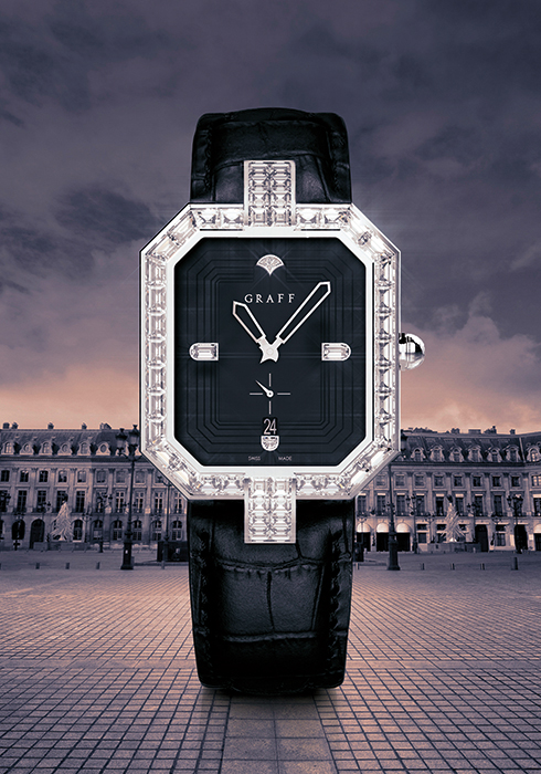 그라프는 새로운 플래그십 스토어의 로케이션인 방돔 광장을 형상화한 새로운 타임피스 ‘방돔’을 선보인다.