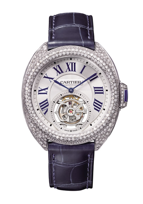 까르띠에는 케이스 전체에 다이아몬드를 세팅한 ‘끌레 드 까르띠에 플라잉 뚜르비옹’을 출시한다.