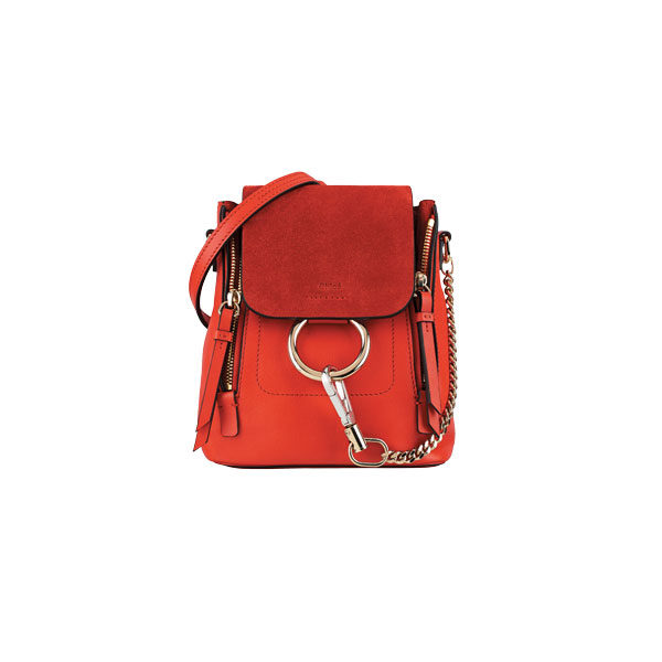 메탈 링 루프와 체인으로 장식한 페이 백팩.