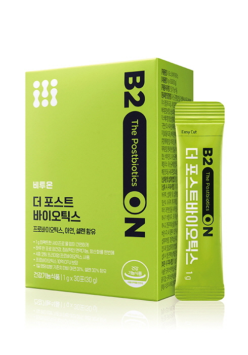 현대인의 다변화된 라이프스타일을 반영한 맞춤형 장 건강기능식품 브랜드 비투온(B2ON). 바이오틱스(Biotics), 바이오액티브(Bioactive)의 약자인 비(B)와 켜다(On)라는 단어의 합성어로 프리·프로·포스트, 세 가지 바이오틱스가 장 건강의 스위치를 켠다는 의미를 내포하고 있다. 브랜드의 대표 제품인 ‘더 포스트바이오틱스’는 하루 한 번, 모든 성분이 농축된 1g 용량의 1포로 온 가족의 장 건강을 챙길 수 있는 건강기능식품. 유산균인 프로바이오틱스와 유산균의 먹이인 프리바이오틱스, 유산균이 먹이를 먹고 대사 과정을 통해 생성하는 유산균 대사 산물인 포스트바이오틱스까지 한 번에 섭취할 수 있도록 설계했다. 소장, 대장 등 소화관에 따라 서식하는 균이 다르다는 점을 고려해 비피더스균과 락토바실러스균을 모두 함유했고, 아연, 셀레늄 등 비타민 및 무기질도 포함하고 있다.