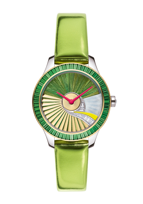 다이얼은 풍뎅이 날개 모티브의 상감 장식으로 덮여 있으며 오실레이팅 웨이트로 특별함을 더했다.