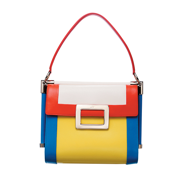 피터르 몬드리안의 그림처럼, 격자무늬로 컬러 블록을 나눈 토트백. 21X18cm,