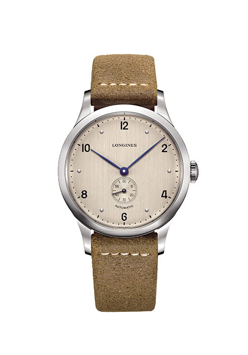 파론진은 직경 40mm의 견고한 스틸 케이스와 브러시드 처리된 구릿빛 다이얼, 누벅 베이지 레더 스트랩이 어우러진 ‘론진 헤리티지 1945’를 출시했다.