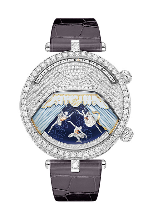 반클리프 아펠은 수십 년 동안 춤의 세계에서 무한한 영감을 얻었다. 특히 고전 예술인 발레는 루이 아펠이 가장 사랑한 장르다. 이로부터 우아한 자태와 아름다운 의상 등 발레의 모든 것에서 영감받아 주얼리를 제작했다. 그리고 이에 그치지 않고 반클리프 아펠만의 탁월한 워치메이킹 기술과 수준 높은 공예 기술, 그리고 주얼리 전문 기술을 결합해 레이디 아펠 발레리나 뮤지컬 워치를 탄생시켰다. 최초로 음악과 모션을 결합해 생생한 시각과 소리에 생명력을 부여한 타임피스로, 고도의 기술력은 물론 화려한 다이아몬드 파베 세팅과 다이얼에 묘사된 발레리나들의 모습까지, 경이로운 면모가 특징이다. 워치가 작동하면서 음악이 나오고 발레리나들이 커튼 사이로 움직이는 모습을 볼 수 있다니, 주얼리와 워치를 넘어 아트 피스라 불리기에 충분한 자격을 갖췄다. 가격 미정. 문의 1668-1906