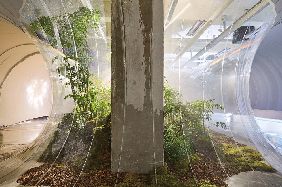 지구촌에 무법자처럼 찾아온 코로나19 탓에 대대적인 오픈 파티를 하지 못했던 스페이스K 서울처럼 지난해 조용히 문을 연 또 다른 문화 예술 공간이 있다. 서울 서초구 반포동 이수그룹 본사 사옥에 자리 잡은 ‘스페이스 이수’. 광주비엔날레 김선정 대표가 남편인 이수그룹 김상범 회장과 뜻을 맞춰 약 495m2(1백50여 평)의 1층 로비를 누구에게나 개방된 전시 플랫폼으로 탈바꿈시켰다. 김 대표가 운영하는 비영리 성격의 예술 기획 단체 ‘사무소’에서 기획을 맡는데, 현대미술만이 아니라 공예, 인테리어처럼 일상과 맞닿는 다채로운 콘텐츠를 소개한다는 방향성을 세워뒀다.