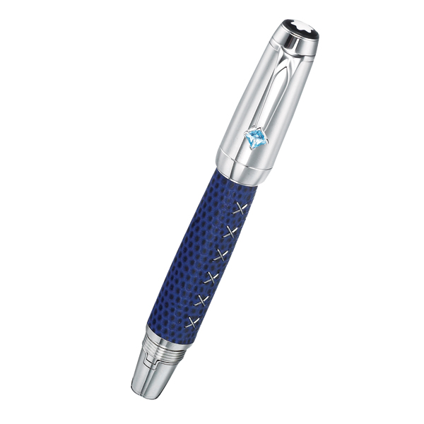 송아지가죽 소재의 보디에 실버 컬러 스티칭으로 장식한 펜
