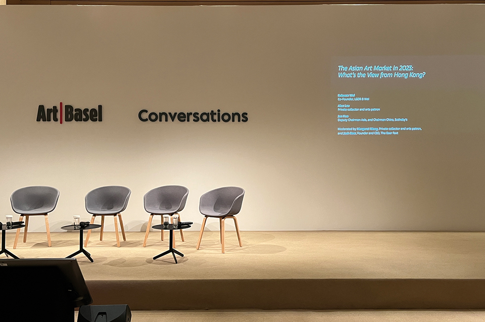 7 지난 3월 22일 홍콩 컨벤션·전시 센터(HKCEC)에서 4년여 만에 물리적 장소에서 ‘라이브’로 전개된 아트 바젤 홍콩 컨버세이션 프로그램. 홍콩의 관점에서 본 아시아 미술 시장에 관한 열띤 토론이 펼쳐졌다.