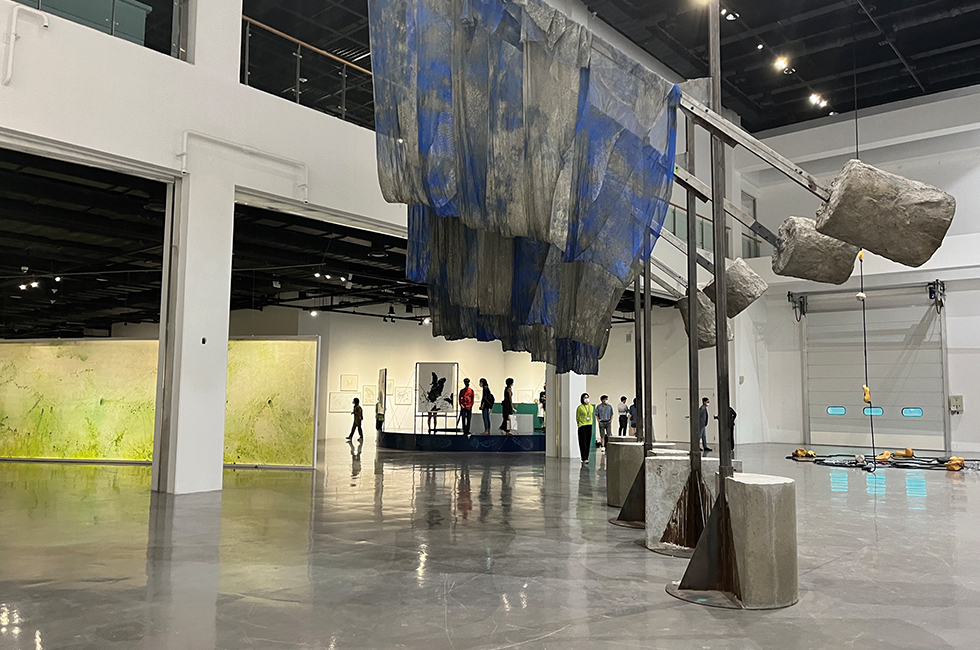 사실 필자는 비엔날레 예찬론자는 아니다. 오히려 한국을 비롯해 지구촌 곳곳에서 저마다의 세금으로 운영되는 비엔날레의 ‘과잉 현상’을 안타깝게 여기는 편이다. 비엔날레가 시대정신을 긍정하는 데 갇혀 있다는 일각의 비판에도 동의하는 부분이 있다. 하지만 지역 주민이나 우리 국민, 그리고 타국인에게도 영감을 선사할 수 있는 ‘글로컬(glocal)’한 면모를 따질 때, 부산이라는 도시와 비엔날레의 궁합에는 높은 점수를 주고 싶다. 시원스러운 바다와 아기자기하게 굴곡진 언덕을 도처에 둔 천혜의 자연 경관은 물론이고 사연도 많고 흥도 많은 역동적인 항구도시라니, 어떤 기획자라도 탐낼 만하지 않은가. 게다가 2018년 을숙도 생태공원에 문을 연 부산현대미술관(MoCA)의 등장을 계기로 해운대 일대에 머물던 비엔날레의 주 무대를 바꾼 건 신의 한 수가 아닐까 싶다. 관광지로 익숙한 해운대가 아니라 ‘작은 어촌에서 출발해 바다를 메워 땅 위에 일군’ 항구도시라는 부산의 역사와 장소성을 깨우칠 수 있는 계기였기 때문이다. 우선, 주 전시장 역할을 맡은 부산현대미술관이 위치한 낙동강 하구 일대는 다양한 생물종의 터전으로 천연기념물 제179호로 지정돼 있다. 1970년대 철새 도래지로 주목받았지만 산업화와 도시 개발 과정에서 크게 훼손됐다가 한때 쓰레기 매립지로 사용되기도 했던 파란만장한 이력을 지녔다. 이 같은 배경에서 부산현대미술관은 압축적인 성장과 변화를 겪으며 생겨난 부산의 도시 생태계만이 아니라 전 지구적인 환경 파괴 문제를 곱씹어보기에도 적합한 장소에 다름아니다. 전통적인 조각 언어를 뒤집은 영국의 저명한 작가 필리다 발로(Phyllida Barlow)의 대형 설치 작품이 놓인 1층 전시장을 위시해 지하 1층, 지상 2층까지 전시 공간으로 쓰이고 있다. 작품이 빼곡하게 들어선 전형적인 미술관 내 전시 구조라 공간의 미학은 다소 아쉽지만, 주제를 아우르는 콘텐츠를 다양하고 심도 깊게 접할 수 있다는 것이 장점이다.
