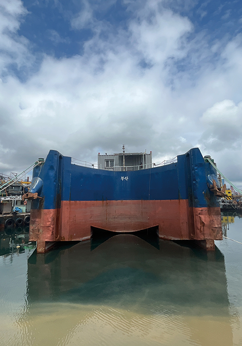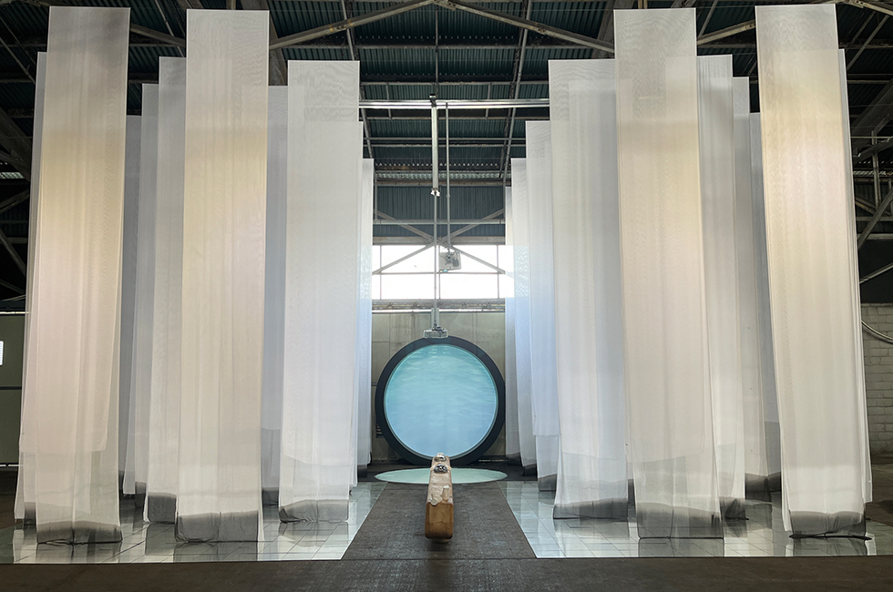 우리나라 최초의 근대 항구 시설인 부산항 제1부두. <부산의 탄생> 서문에서 저자 유승훈은 민족의 정서가 스며든 부산항 제1부두가 해방 후에도 귀환 동포들이 짐을 풀고 희망을 디딘 곳이자, 한국전쟁기에 미군이 무기를 내린 공간, 피란민을 위한 구호품이 수송된 장소로서 ‘대한민국 근현대사의 증인’ 노릇을 했다고 말한다. 북항 재개발 계획으로 매몰될 위기에 처했던 제1부두는 역사와 가치를 인정받아 재개발 계획에서 분리됐고, 이번 비엔날레에서는 제1부두내 약 4,000㎡ 규모의 옛 창고 건물이 전시장으로 탈바꿈했다. 장내로 들어서면 경남 진해에서 수급했다는 굴 껍데기 더미를 단 나무 기둥을 원형으로 배열한 호주 작가 메건 코프(Megan Cope)의 설치 작품 ‘킹인야라 구윈얀바(Kinyingarra Guwinyanba)’가 시선을 사로잡는다. 패총을 연구하는 작가는 산업 수요에 맞춘 굴 생산의 폐해를 주시하며 호주의 전통 양식을 재현하는 작업을 해오고 있는데, 이에 관련된 다큐멘터리도 함께 상영되고 있다. 그 뒤에 자리한 광목이 하얗게 드리운 설치 작품도 눈길을 끄는데, 김주영 작가의 ‘제1부두의 고고학: 물결은 빛이 되다. 바람이 되다. 길이 되다. 역사가 되다’라는 작품이다. 1948년생인 작가는 전후 한국의 역사적 비극인 분단 속에서 마주하게 된 자기 정체성에 대한 성찰에서 출발해, 떠남과 귀환의 반복이 이어지는 노매딕한 작업 여정을 꾸준히 해왔는데, 이번에는 자신의 작업 세계를 구성하는 4원소(쌀, 재, 황토, 소금) 중 소금을 바다 물결에 담으며, 제1부두에서 거둔 새의 사체를 위한 영혼제를 치렀다. ‘전자 식민주의’ 이론을 중심으로 흥미롭게 서사를 전개하는 타비타 르제르(Tabita Rezaire)의 ‘밀물과 썰물 아래’, AI와 머신 러닝으로 강화되는 감시와 검열의 시대에 살아가는 먼 미래 시점에서 현재를 돌아보는 김익현의 ‘나노미터 세계의 시간’ 등 이 전시장의 작품들은 ‘깨알’같이 매력적이라 창고로 들어오는 햇살과 바람을 벗 삼아 느긋이 감상하기를 권하고 싶다.