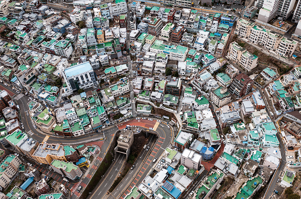 아담한 건물들이 빽빽하게 들어찬 초량의 거주지 풍경은 일제강점기 28만 명이던 부산의 인구가 1980년에 3백50만 명대에 이르게 된 압축 성장과 인구 변화의 증표나 다름없는 듯하다. 올해 부산비엔날레는 초량의 언덕에 위치한 집 한 채를 전시장으로 사용했는데, 여기에서는 부산 출신인 송민정 작가의 영상 작품을 휴대폰에 담아 선보이고 있다. 스물세 살 되던 해, 해외 발령으로 신발 기술자 남편을 따라 정착하게 된 하루코와 춘자의 스토리를 담은 ‘커스텀’이라는 작품으로 그들의 스마트폰을 주문 제작하며 일어나는 미스터리 스릴러물이다. 쓸쓸한 듯 앙증맞은 집 여기저기에 설치된 휴대폰 스크린을 응시하며 가만히 나지막한 독백을 듣노라면 오싹한 스릴러 분위기보다는 시공간을 잠시 초월한 느낌으로 나름의 ‘힐링’마저 선사하는 듯하다. ‘여성과 여성 노동자’, ‘이주’ 같은 이번 비엔날레의 핵심 키워드를 담고 있는 이 작품은 부산항 제1부두 전시장에서도 만나볼 수 있다. 비엔날레라는 행사는 작품의 규모가 압도적이고 다수가 영상 작품인데, 마치 지구촌을 아우르는 커다란 세계를 한꺼번에 접하는 듯한 장점도 있지만 되도록 많이 ‘섭렵’하려다 보면 피곤해지기도 하는 단점도 따른다. 시간 여유가 많지 않다면 빠르게 훑어본 뒤 한두 작품만이라도 집중해서 제대로 보는 편이 ‘내실’에 더 보탬이 되지 않을까 싶다.