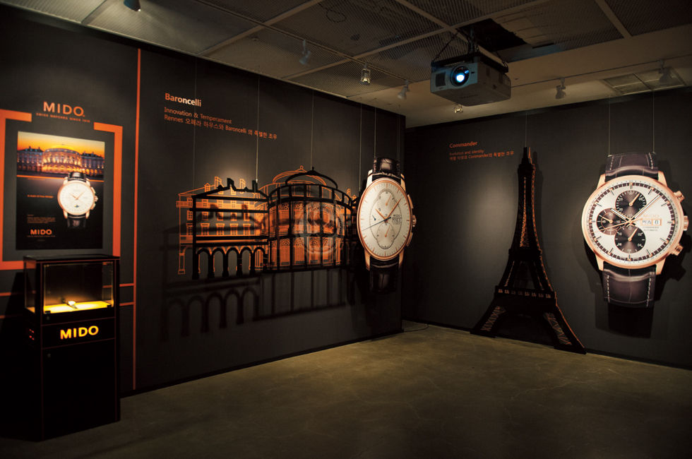 브랜드의 95년 역사를 둘러볼 수 있는 ‘히스토리 존’, 미도 컬렉션을 착용할 수 있는 ‘체험 존’을 비롯해 3D 영상 아트, 입체 건축물 오브제 등 다양한 볼거리를 제공했다.