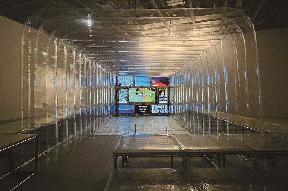 사실 소장품의 면면은 이 특별한 공간이 아니더라도 흥미롭다. 미디어아트의 또 다른 거장 피터 바이벨을 비롯해 이불, 문경원 & 전준호, 김윤철, 전소정 등 한국의 스타 작가들, 송동(중국), 날리리 말라니(인도), 와엘 샤키(이집트), 아피찻퐁 위라세타쿤(태국) 등 가히 ‘미니 비엔날레’를 방불케 하는 각국의 경쟁력 있는 작가들의 작품이 함께한다. 룸톤, 권하윤 작가의 경우에는 가상현실(VR) 체험을 할 수 있는 작품을 선보이는데, 짭조름한 바다 내음이 묻어 있는 듯한 공간에서 미래의 세상을 거니는 듯 이색적인 경험의 묘미가 남다르다.