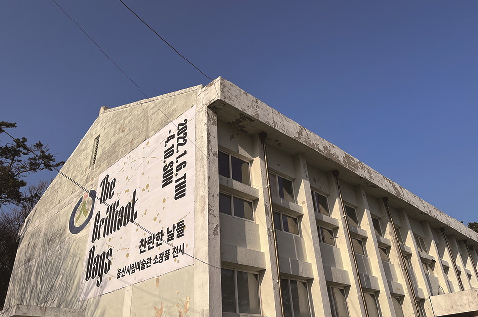 혹시라도 오는 4월 초까지 울산에서 ‘미술관 투어’를 시도해볼 의사가 있다면, 바닷가 해돋이 명소로 잘 알려진 대왕암공원을 ‘동선’에 넣어야 한다는 점을 기억하길 바란다. 물론 미술관 본관의 알짜 콘텐츠를 놓쳐서는 안 되겠지만 수려한 바다 풍경을 배경으로 한 대왕암공원 내 폐교 건물에서 아름다운 ‘장외 전시’가 펼쳐지고 있기 때문이다. 지금은 울산교육연수원으로 쓰이는 폐교(옛 방어진중학교)의 교사동과 강당을 활용했다. 학교를 무대로 전시를 꾸리는 건 미술 기획자들의 꿈이라고 했던가. 교실 공간마다 한 작가의 작품이 담겨 있는 전시 공간, 그리고 창문 너머로는 해변이 보이는 전망의 조화는 그 ‘꿈’을 십분 이해하게 만들어준다.