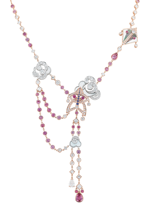 화이트 & 그레이 머더오브펄과 다양한 커팅의 핑크 & 퍼플 사파이어 세팅으로 볼륨감을 표현해 생동감 넘치는 컬렉션을 완성했다.