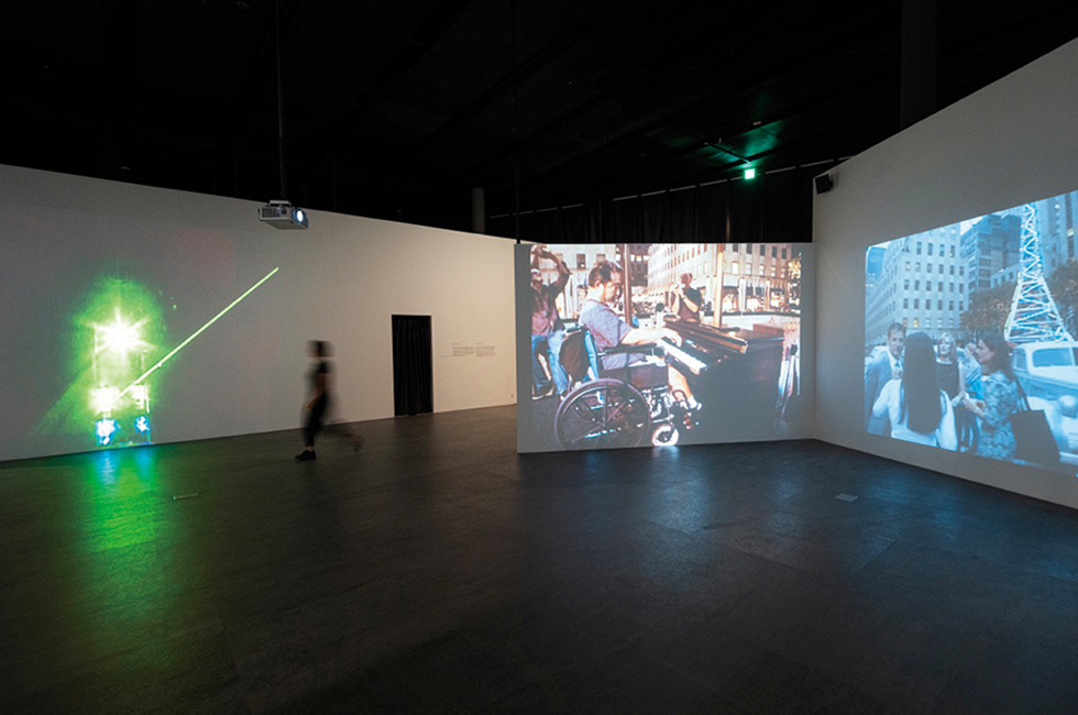 3 백남준아트센터 전시실 내부로 이어지는 백남준의 아카이브 영상에서 2002년 뉴욕 록펠러 센터 앞 광장의 생생한 현장을 볼 수 있다. 백남준의 피아노 퍼포먼스 ‘20/21’도 감상할 수 있다.
