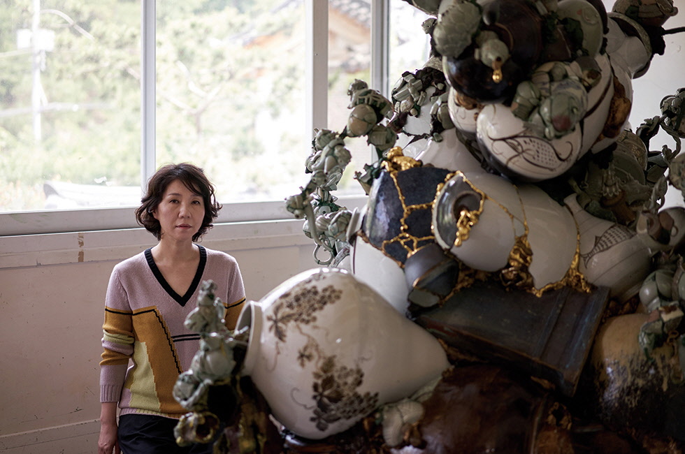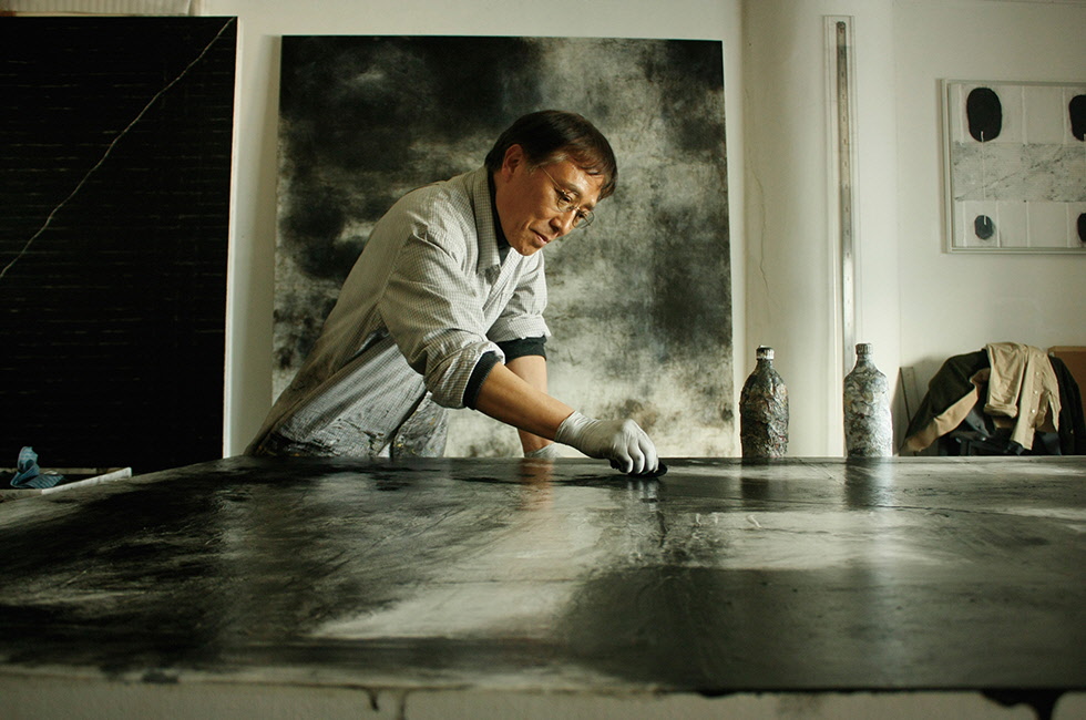 1 <자문밖 미술관 프로젝트> 전시 1부에 선보인 조각가 최종태(89세)와 추상화가 윤명로(85세)의 작품들. 2 한국 전위예술의 획을 그은 김구림(85세) 작가의 작품이 보인다. 김구림과 최종태는 미술관 건립이 정해졌고, 윤명로 작가도 자택을 개조한 미술관 설립을 논의 중이다. 3 105세 현역 작가 김병기의 ‘임초도’(1983), Oil on canvas, 151X91cm. 4 한국 판화의 선구자로 꼽히는 이항성(1919~1997)과 추상미술의 거장 유영국(1916~2002)의 전시 모습. 5 2021년 3월 5일부터 28일까지 가나아트센터에서 열리는 <자문밖 미술관 프로젝트> 전시 2부 포스터. 참여 작가는 고영훈, 박대성, 박영남, 박항률, 안규철, 이배, 이수경, 이원희, 임옥상, 전병현, 최영욱, 한만영 등 12인. 2부에는 자문밖에 자리한 자신의 작업실을 바탕으로 다양한 프로그램을 전개하는 ‘아뜰리에 미술관’ 대상 작가들이 포함돼 있다. 6 대표작 ‘번역된 도자기’ 시리즈 등으로 국내외에서 명성을 떨치고 있는 이수경 작가는 아이들이 뛰노는 창의적 놀이터와 공동 작업, 다양한 프로그램 등을 함께할 수 있는 아뜰리에 미술관을 추구한다고 밝혔다. © Yeesookyung Photo by 양이언 7 안규철, ‘그들이 떠난 곳에서-바다’(2012), Acrylic on canvas, 3호(27.3X19cm) 캔버스 2백 개. 자취를 알 수 없는 5·18 실종자 얘기를 담은 2012년 광주비엔날레 출품작. 당시 2백 개의 캔버스를 시내 곳곳에 버려놓고 돌려달라는 신문 공고를 냈는데 스물 대여섯 점만 돌아와 ‘원본’은 없다. 안 작가는 이번 전시를 위해 ‘재작업’했다. Courtesy of the Artist 8 역시 아뜰리에 미술관 대상으로 거론되고 있는 박영남 작가가 작업 중인 모습. Courtesy of the Artist