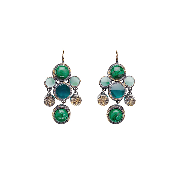 다양한 그린 톤의 스톤으로 완성한 드롭 이어링