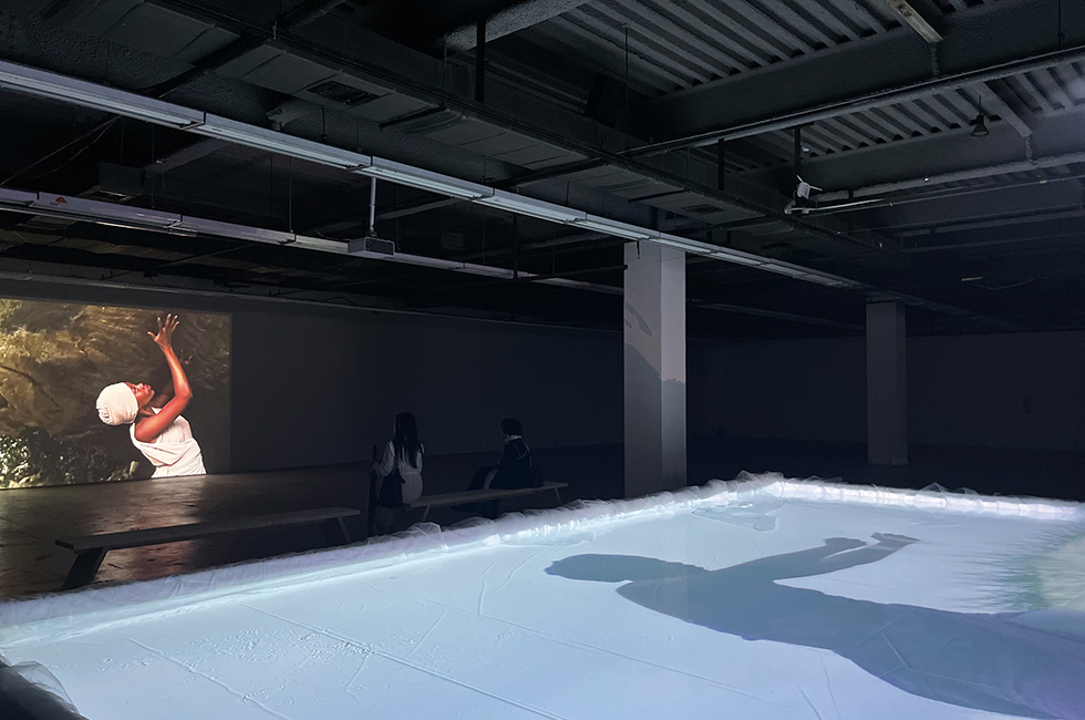 전시관 진입부를 따라 들어서면 어두운 바닥의 흙 사이로 오솔길이 나 있다. 부드러운 실을 엮어 만든 밧줄과 나무 둥치에 서린 은은한 빛을 따라 걷다 보면, 제의적 노래 부르기에 가까운 사운드에 맞춰 춤을 추는 듯한 여성들의 영상을 마주하게 된다. 불레베즈웨 시와니(Buhlebezwe Siwani)가 꾸린 이 공간은 인류 역사의 다양한 문화권에서 발현된 ‘어머니 자연’, ‘어머니 여신’의 믿음을 떠올리게 한다. 요하네스버그 출생으로 전통적인 치유자 ‘상고마’로 훈련받기도 한 작가는 아프리카 신화와 현실을 중심으로 영혼과 영적인 것에 관한 작품을 만들어왔다. 장소 특정적 설치 ‘바침’은 초자연적 존재가 깃든 신비로운 대자연을 구현한다. 3채널 영상 작업 <영혼 강림>은 이러한 존재들을 상상하며 현 사회 속 흑인의 몸을 다각적으로 비춘다. 특히 수조 아래 설치된 영상은 노예무역 중 수장된 수많은 아프리카인을 떠올리게 하는데, 한 무리의 여성이 해안가에서 제의 형태의 군무를 행할 때 그 울림은 배가되는 듯하다. 두 작품은 대지와 물, 인간과 자연, 소환과 회복의 다층적 이야기를 영적인 틀로 묶어낸다. ‘들어서며’의 공간에 펼쳐진 두 작품의 풍부한 시각적 단서는 비엔날레가 아우르는 네 가지 소주제로 파동한다.