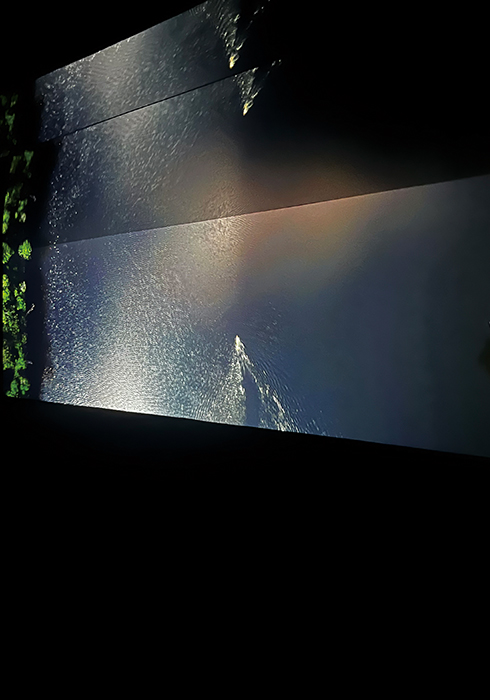 10 아마존 주변 여러 강들을 유영하는 (일반적으로 믿기 어려운 환상을 의미하는 키메라를 연상시키는) 신화적 존재는 인간과 비인간 세계의 공존을 보여준다. 에밀리아 스카눌리터, ‘아이쿠알리아’(2023), 설치 전경