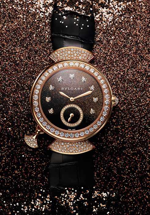 불가리는 스위스 바젤에서 개최된 2018 바젤월드에서 여성 주얼리 워치메이킹 1백 주년을 기념해 ‘디바 피니씨마 미닛 리피터’를 공개했다. 다이아몬드를 세팅한 직경 37mm 사이즈의 18K 로즈 골드 케이스와 인덱스, 스몰 세컨즈, 곡선미를 강조한 러그, 블랙 악어가죽 스트랩이 조화를 이루어 화려하면서도 세련된 여성미를 느낄 수 있다.