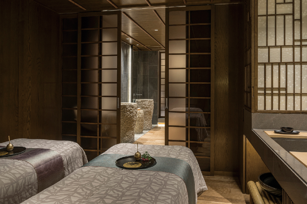사실 필자는 호텔로 가는 길에 잠시 동네 구경을 하다가 길을 살짝 잃을 뻔했다. 시야에 묘법원 외관이 들어왔지만 호텔 간판은 찾아볼 수가 없었고 마침 휴대폰 배터리가 나가는 바람에 당황했는데, 다행히 한 소녀를 만났다. 포시즌스 호텔 교토 근처에 교토 여자중·고등학교가 자리하는데, 등굣길에 자연스레 지나치게 되는 호텔 정문 방향의 입구를 알려주면서 수줍게 미소를 띤 채 떠났다. 양쪽에서 연둣빛이 춤추는 듯한 대나무들이 늘어선 길을 지나 안쪽으로 꽤 깊숙이 들어선 이 호텔의 진면목은 정원을 따라 펼쳐져 있다. 12세기에 조성된, 그러니까 무려 8백 년 세월에 걸쳐 고유의 색을 간직해왔다는 ‘샤쿠스이엔(Shakusui-en)’ 연못 정원이다(10,000㎡ 규모). 그 자체로 ‘보물’인 만큼 포시즌스 호텔 교토는 전체적인 설계에 이 운치 있는 연못 정원을 누릴 수 있는 다양한 ‘배려’를 반영했다는 인상이 절로 든다. 상당수 객실은 연못 정원 또는 이 정원을 둘러싸고 있는 울창한 나무의 정기를 바로 맞대는 느낌을 자아내는 듯한 ‘뷰(view) 맛집’을 자랑한다. 또 비공개 사찰인 남예산 묘법원의 고아한 목조 지붕을 내다볼 수 있는 전망도 근사하다. 건물 자체가 높지 않기에(객실의 최고층이 4층) 이 총천연색 파노라마를 객실뿐 아니라 엘리베이터와 복도에 난 창, 야외 산책길, 정원 앞에 자리한 레스토랑(Brasserie)에서 가까이 감상할 수 있다. 전통 스키야 스타일의 티 하우스 등을 둔 후주(Fuju) 라운지에서 유자 주스나 샴페인을 홀짝이면서 보는 연못 풍경도 감탄사를 절로 부르게 한다. 일반 호텔이 아니라 장기 투숙하며 취사, 세탁 등도 가능한 레지던스 형태로 운영하는 객실도 57개 있는데, 그중에는 자신만의 작은 정원을 두는 ‘특권’을 누리는 경우도 있다.