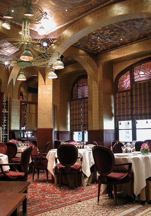 파리는 누가 뭐라 해도 옛것과 현대의 것이 공존하는 도시이다. 현대의 테크놀로지와 감성을 추구하며 살지만 옛 추억을 간직하려는 파리지엔의 마음처럼 실제로 파리의 건물과 공간에 대한 과거의 기록이 촘촘하고 정성스럽게 보존된 채 현대적인 방식으로 다시금 태어나고 있다. 그중 르 텔레그라프라는 레스토랑은 지금은 먼 옛날 이야기처럼 느껴지는 전보, 즉 텔레그라프를 추억하게 한다. 파리를 상징하는 에펠탑은 프랑스 중앙 우체국의 안테나 역할을 했으며 모든 전보와 전화망이 이곳을 거쳐 갔다. 따라서 그 주위, 7구와 15구에 우체국 직원들의 숙소가 마련되어 있었다. 15구에는 남자 직원들이 숙식을 해결하는 여관이 있었고 7구, 레스토랑 르 텔레그라프가 위치한 곳은 여자 직원들이 모이던 숙소로 1층엔 공무원들을 위한 레스토랑과 우체국이, 2층부터는 정부의 관할하에 있는 작고 아담한 여성 전용 호텔이 위치했다. 1905년 당시 유명한 건축가 모리스 블리오(Maurice Bliault)가 만든 아름다운 고딕식의 높은 천장과 실내에 속한 야외 정원을 그대로 간직한 채 1980년 미구엘 캉시오(Miguel Cancio)에 의해 대리석 모자이크와 금색의 화사한 컬러로 다시 태어났다. 그는 파리의 유명한 부다바와 바 플라이 같은 신비한 분위기의 고급 바들을 장식한 인물로, 화가인 클림트의 시각을 빌려 텔레그라프에 머물던 여인들의 모습을 아름답게 표현해냈다. 레스토랑의 주인은 클림트의 그림을 사 모으는 주요 컬렉터로, 실제 클림트의 초기 습작들을 이 레스토랑에서 만날 수 있다. 파리에서 가장 아름다운 레스토랑이라고 많은 잡지와 책에 소개된 르 텔레그라프의 스페셜 메뉴는 전통 프랑스 요리인 푸아그라와 아스파라거스 샐러드, 고급 와인과 샴페인이다. 여름철은 야외의 아름다운 테라스에서 식사를 즐길 수 있으며 저녁에는 금색의 황홀한 불빛과 영롱한 샴페인의 아름다운 색조가 조화를 이루어 인상 깊은 밤을 만끽할 수 있을 것이다. 1백 년의 깊은 역사를 지닌 르 텔레그라프에서 소박하게 전보를 부치는 일이나 소식을 기다리기 위해 몇 시간을 앉아서 기다리는 풍경은 이제 더 이상 볼 수는 없지만 그때의 향수를 불러일으키는 추억의 흔적들이 레스토랑 구석구석에 남아 있다. 많은 이야기를 전해주던 곳이 지금은 다양한 맛과 아름답고 고급스러운 분위기를 사람들에게 전해주고 있는 것이다.