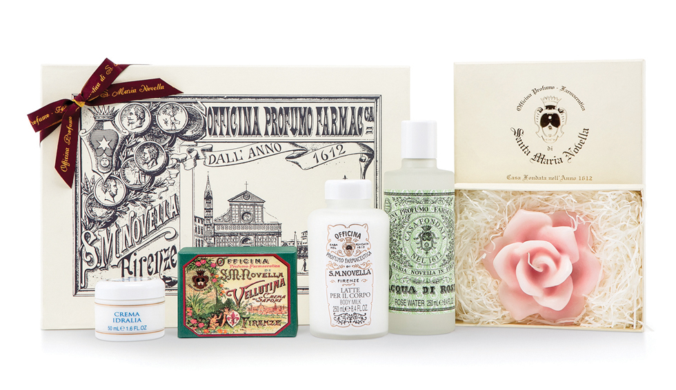 전설적인 향수 ‘아쿠아 디 콜로니아’를 비롯해 로즈 워터 ‘아쿠아 디 로즈’, 보디 크림 ‘라떼 페르 일 코프르’ 등 산타 마리아 노벨라의 베스트셀러 제품으로 구성한 패키지를 구입하면 분홍색 장미꽃 모양의 장미 향초 ‘칸델라 로사 로사’를 증정한다.