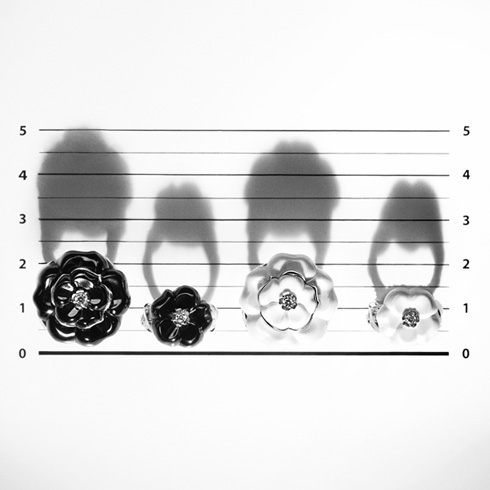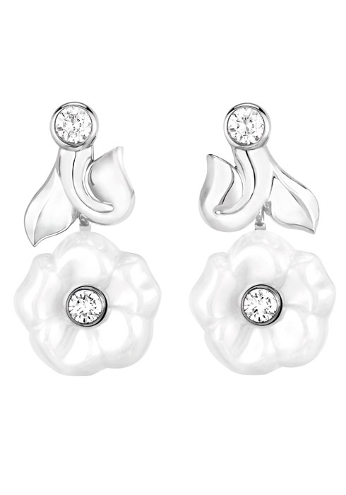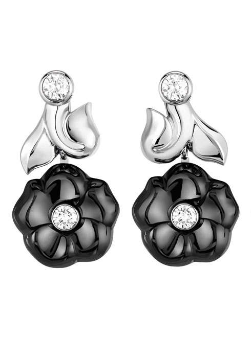화이트 또는 블랙 세라믹 까멜리아 중앙과 잎사귀에 다이아몬드를 세팅해 화려한 아름다움을 보여준다.