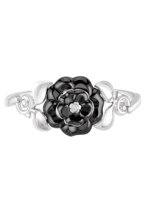 화이트 또는 블랙 세라믹으로 만든 까멜리아와 화이트 골드 잎사귀가 조화를 이루는 브레이슬릿.