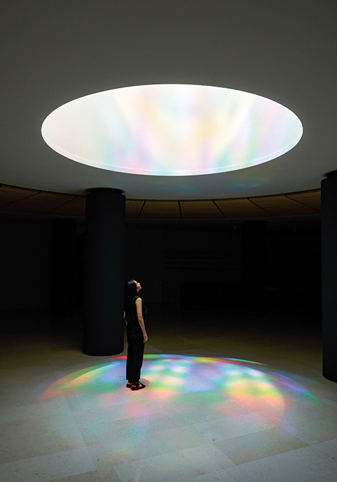 이렇듯 첫인상은 ‘절제된 품격’이라는 표현이 어울리는데, 내부로 발을 들이면 또 다른 분위기의 풍경이 펼쳐진다. 경건함은 여전히 묻어 있지만 보다 해사하고 융통성이 느껴진다. 특히 개관전 1부(오는 11월 20일까지)를 진행 중인 여러 층에 걸친 전시 공간은 전반적으로 고요하면서도 군데군데에서 낭만이 묻어난다. ‘콘텐츠’ 자체를 편안하게 살려주는 평온한 그릇 역할을 하는 것이다. 지상 도입부의 소박한 야외 정원을 낀 1층을 비롯해 1층 로비에서 2층 전시장으로 이어지는 나선형 계단의 완만한 곡선미, 그리고 지하 2층 전시장에서 1층 천장까지 둥근 모양으로 시원하게 뚫려 빛을 통과시키는 구조가 무게감을 자아내면서도 멋스럽게 숨을 터주는 듯하다. “1층에서 아래를 내려다보면 지하 전시장을 볼 수 있으며, 나선형 계단을 따라 걷다 보면 새로운 공간을 마주하게 되고, 자연스럽게 전시장으로 이어집니다.” 피에르 드 뫼롱은 이처럼 새롭게 발견하는 ‘파운드 스페이스’가 그들의 대표작 중 하나인 테이트 모던의 터빈홀 같은 것이라고 설명하면서 이러한 발견의 미학, 그리고 공간의 다양성을 원했던 클라이언트의 의도가 확실하고 일관성이 있어 좋았다고 거듭 강조했다. “저희는 편견 없이 순수한 아이처럼 새로운 걸 찾고 세상을 알아가는 마음으로 임하고 있습니다(중략). 송은은 어떤 공간, 기능이 필요한지 명확히 알고 있었기에 저희가 즐거운 여정을 떠날 수 있었습니다.”