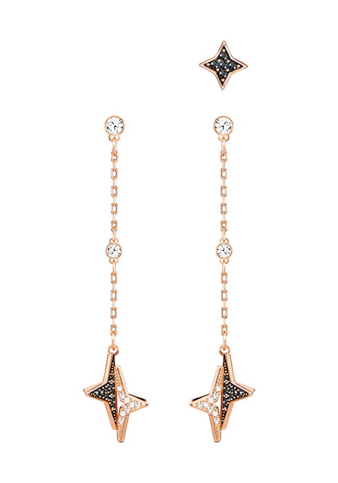 로즈 골드 플레이팅에 블랙 크리스털이 조화롭게 어우러져 모던한 반짝임을 자아낸다.