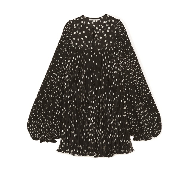 화이트 폴카 도트가 사랑스러운 플리츠 미니드레스