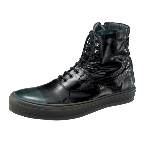 짙은 청록색의 에나멜 하이톱 스니커즈